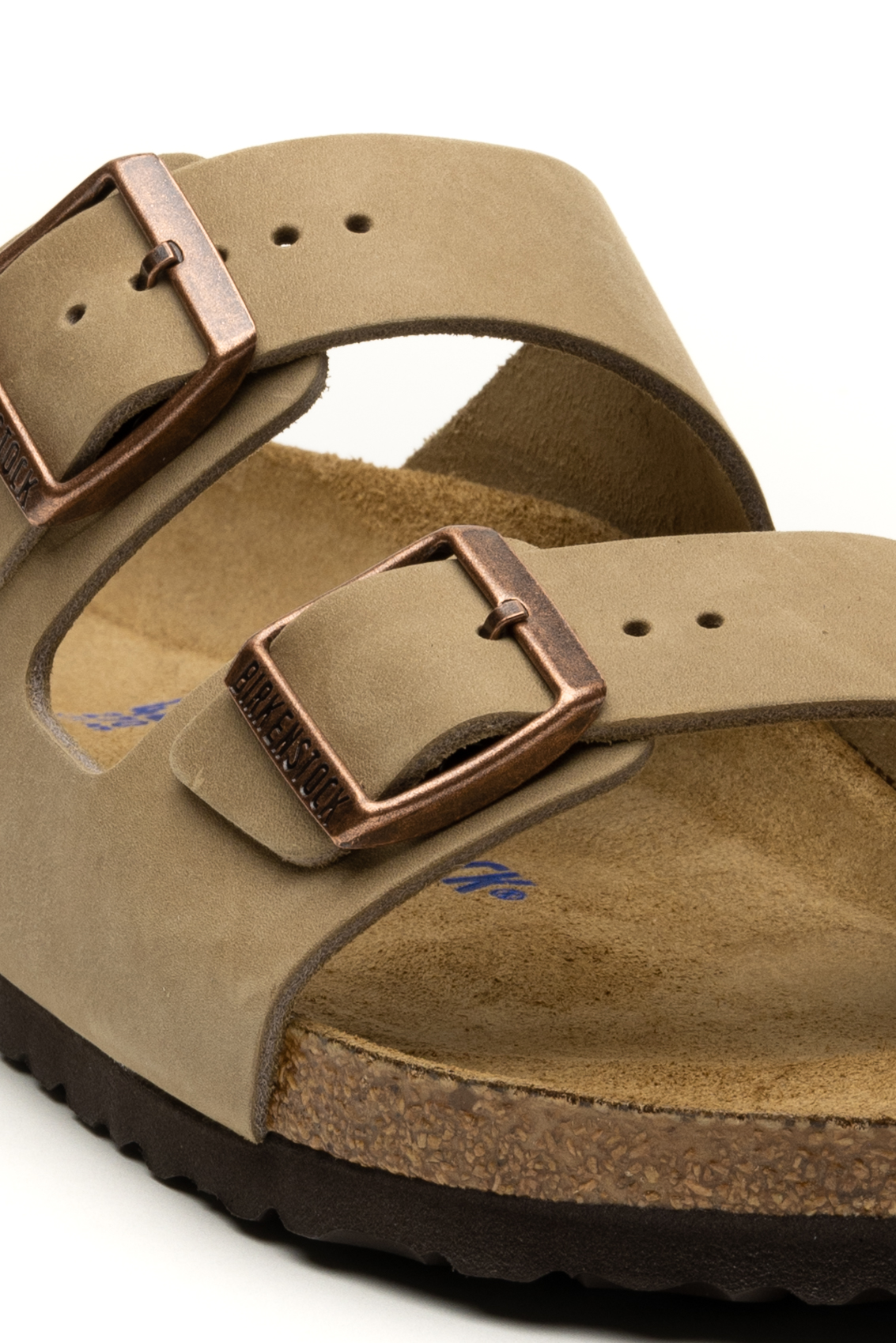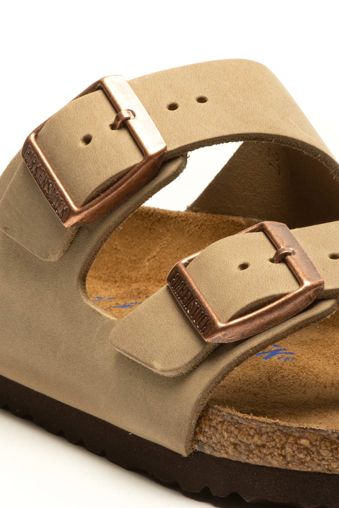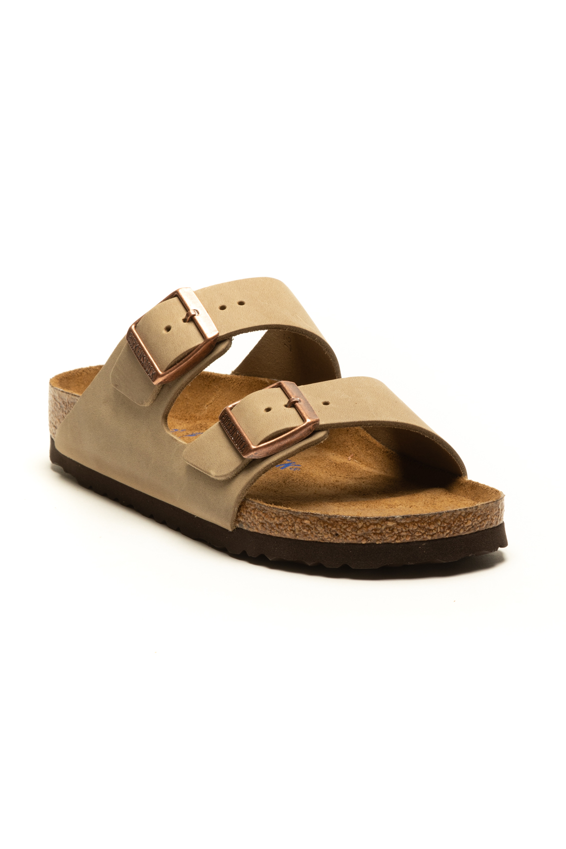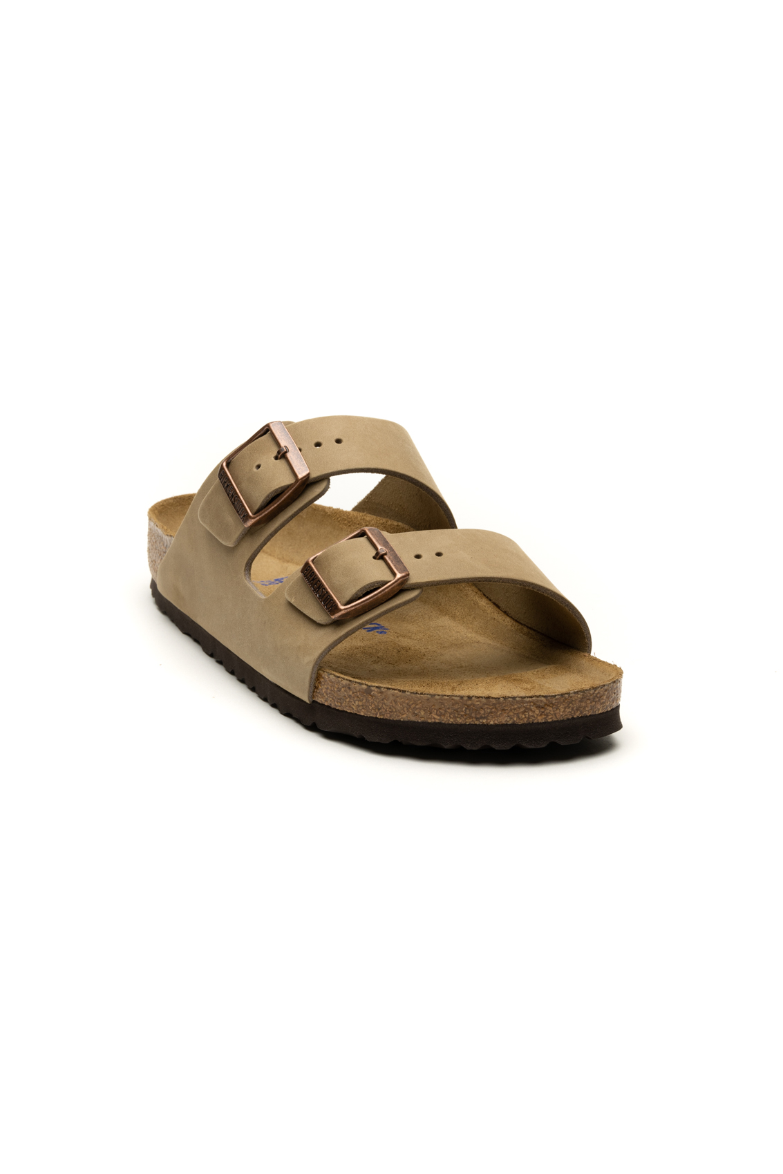 Made of leather. This model has a sober and natural design, with two adjustable straps with metal buckles. The footbed is anatomical and made of cork and latex, offering comfortable support for the foot. The sole is made of EVA (ethylene vinyl acetate), which guarantees lightness and elasticity, absorbing vibrations well when walking.
