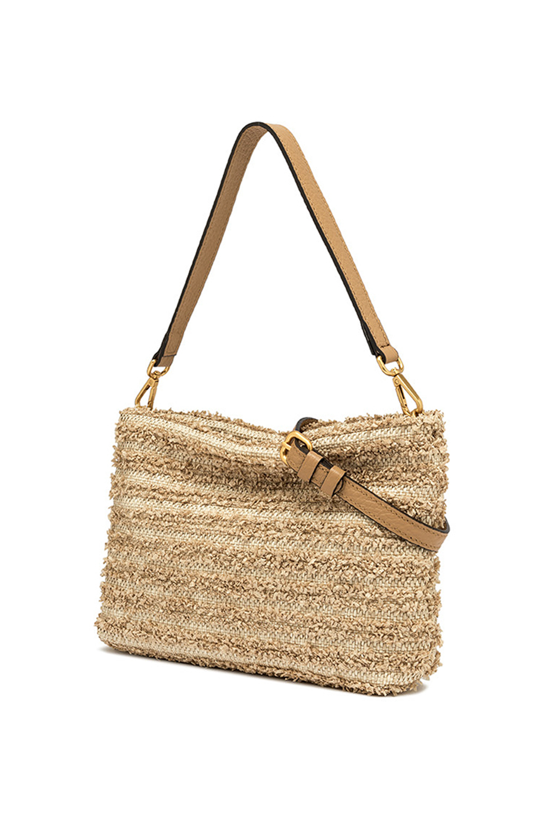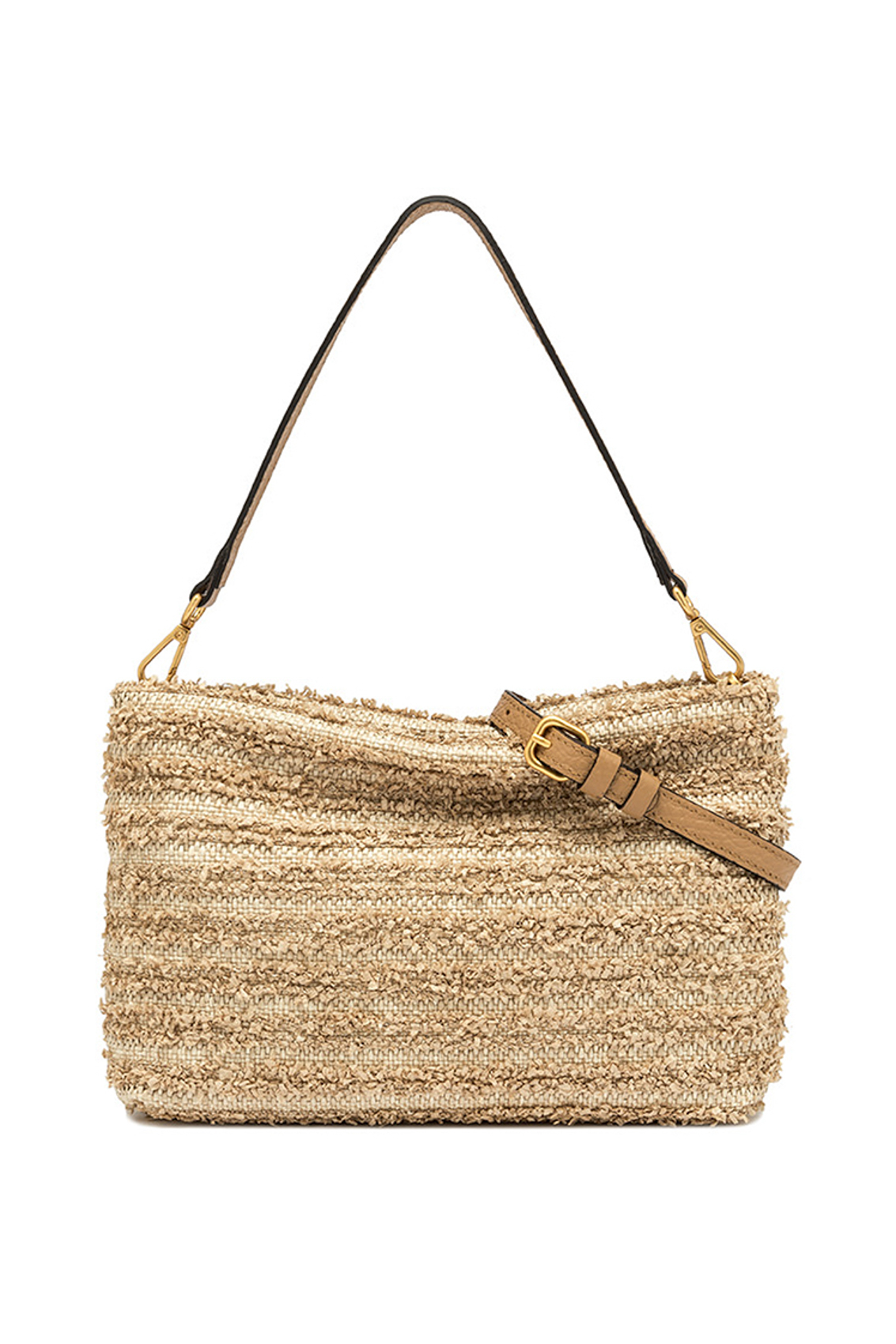 Brenda è una pochette in paglia fru fru impreziosita da un manico in pelle removibile. Al suo interno troviamo una tasca piatta. Da indossare crossbody grazie alla tracolla regolabile e removibile.