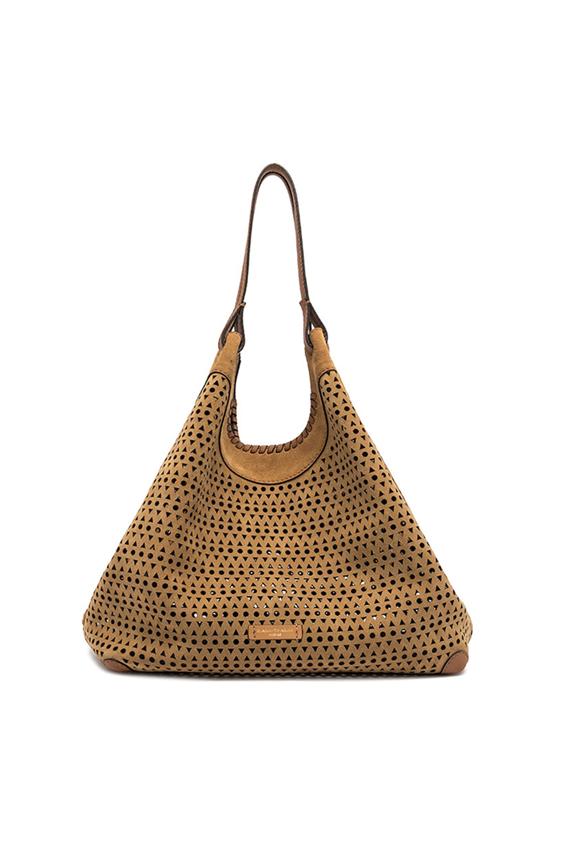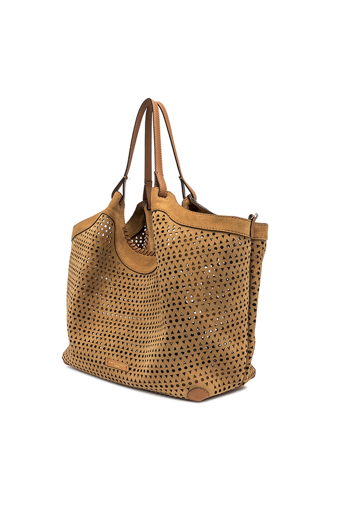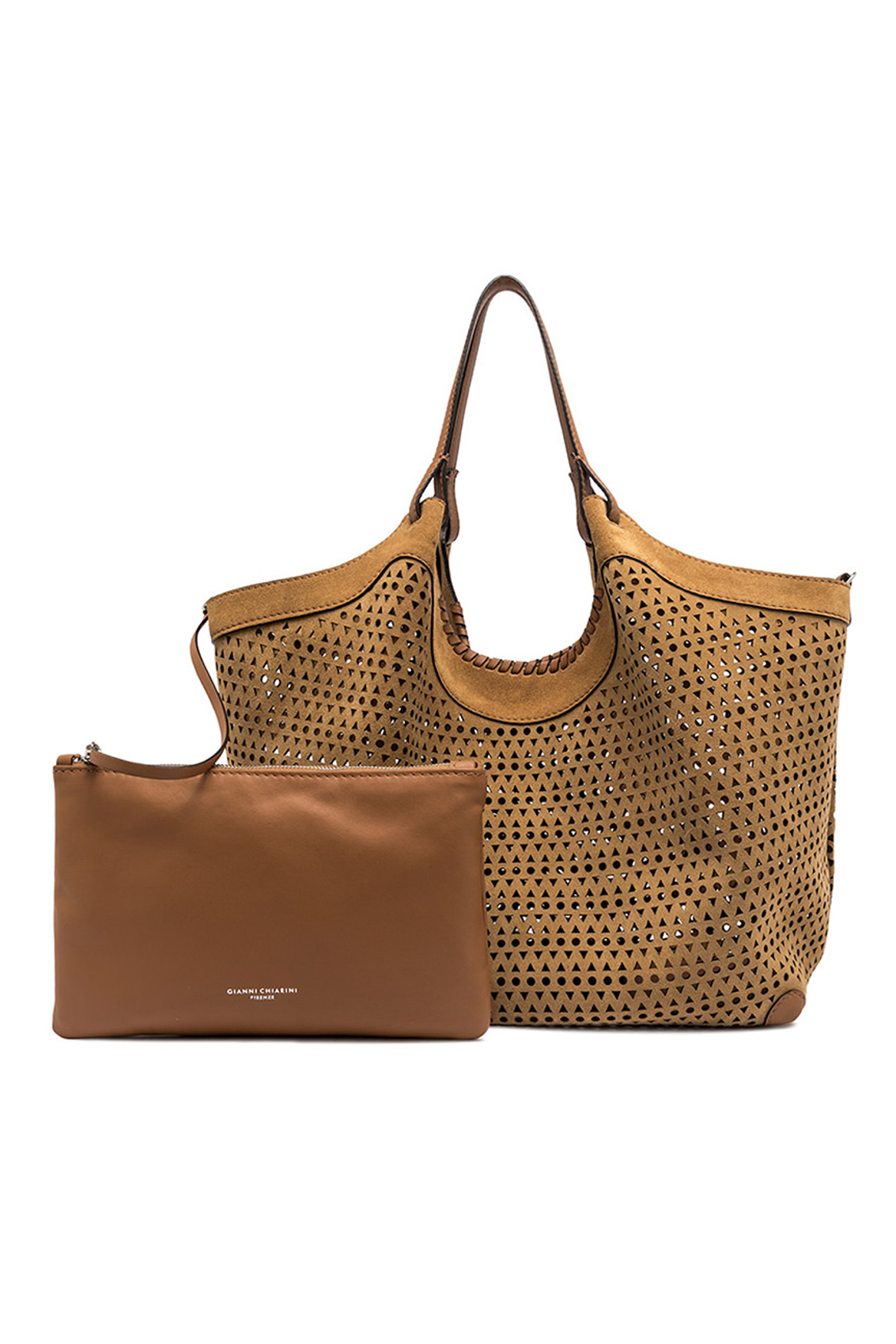 L'icona del brand DUA è caratterizzata da un design semplice al contempo contemporaneo. Realizzata in pelle di camoscio, si arricchisce dal decoro traforato. Uno splendido gioco di luce e trasparenze, di grande tendenza. Arricchita da una pochette con chiusura a zip per accentuarne la praticità. Ai lati, due moschettoni per regolare l'ampiezza della borsa.