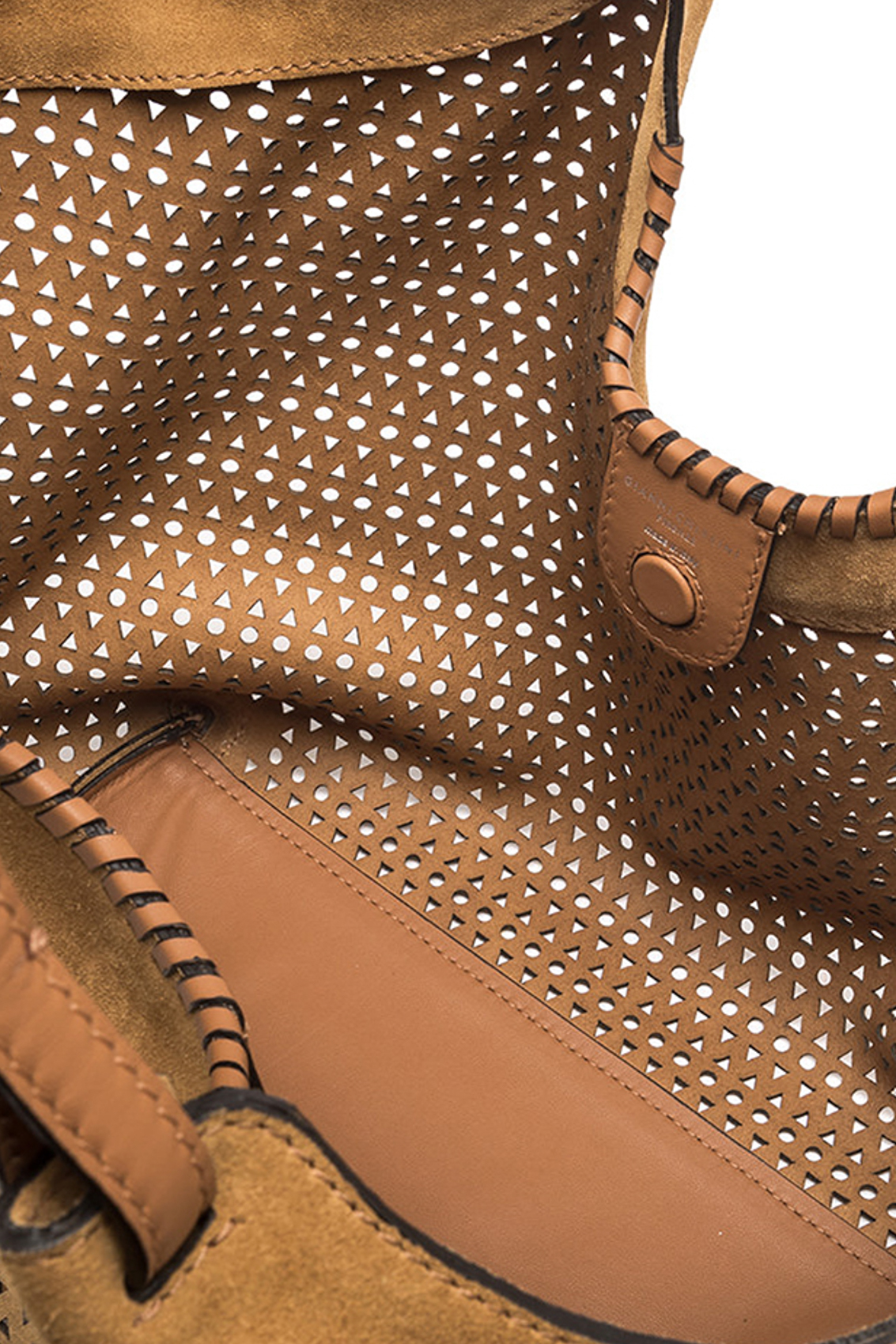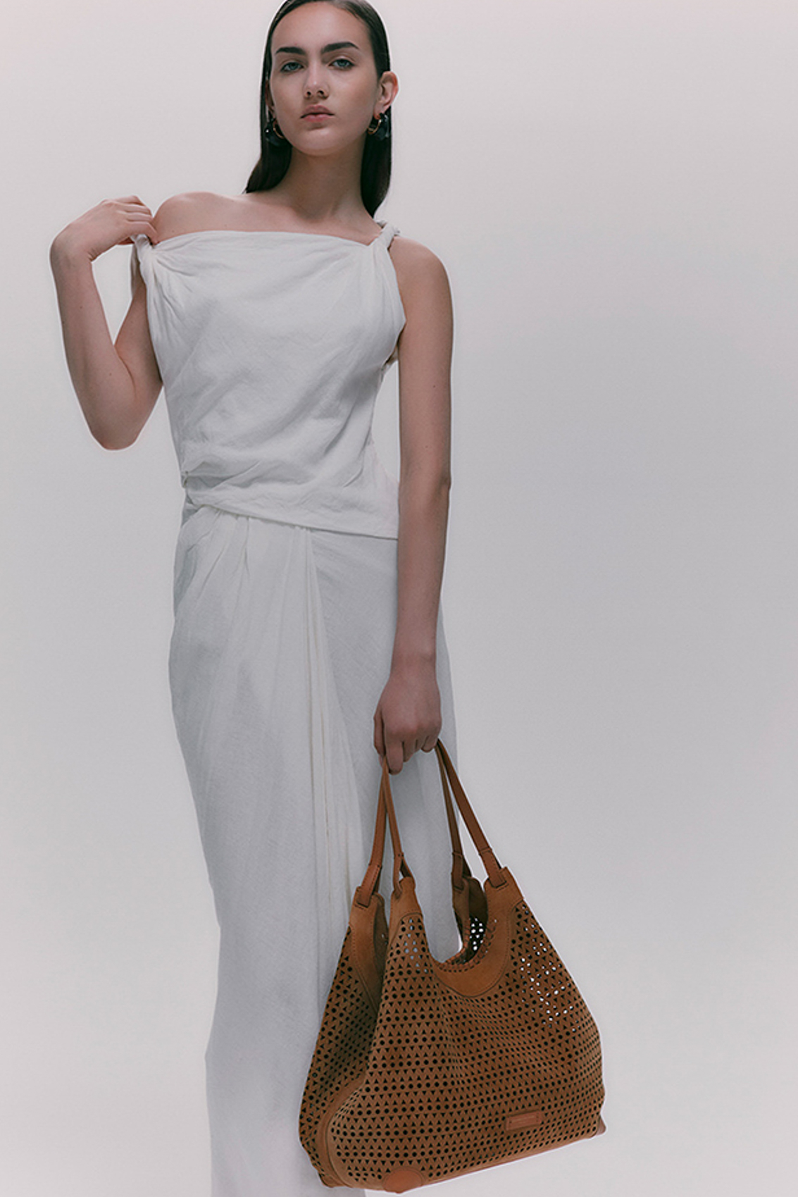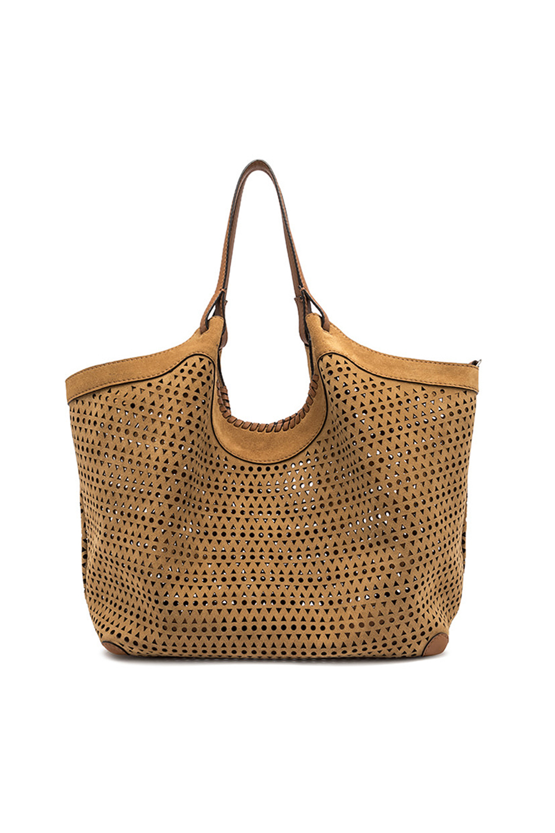 L'icona del brand DUA è caratterizzata da un design semplice al contempo contemporaneo. Realizzata in pelle di camoscio, si arricchisce dal decoro traforato. Uno splendido gioco di luce e trasparenze, di grande tendenza. Arricchita da una pochette con chiusura a zip per accentuarne la praticità. Ai lati, due moschettoni per regolare l'ampiezza della borsa.