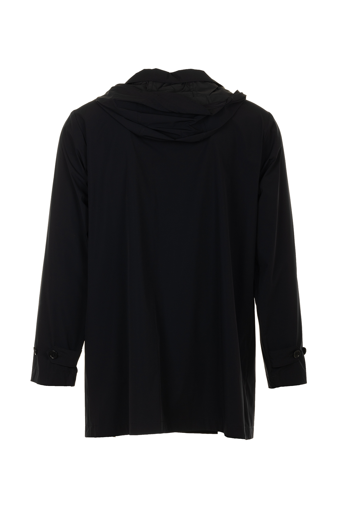 Impermeabile sfoderato in nylon stretch con cappuccio staccabile inserito nel colletto