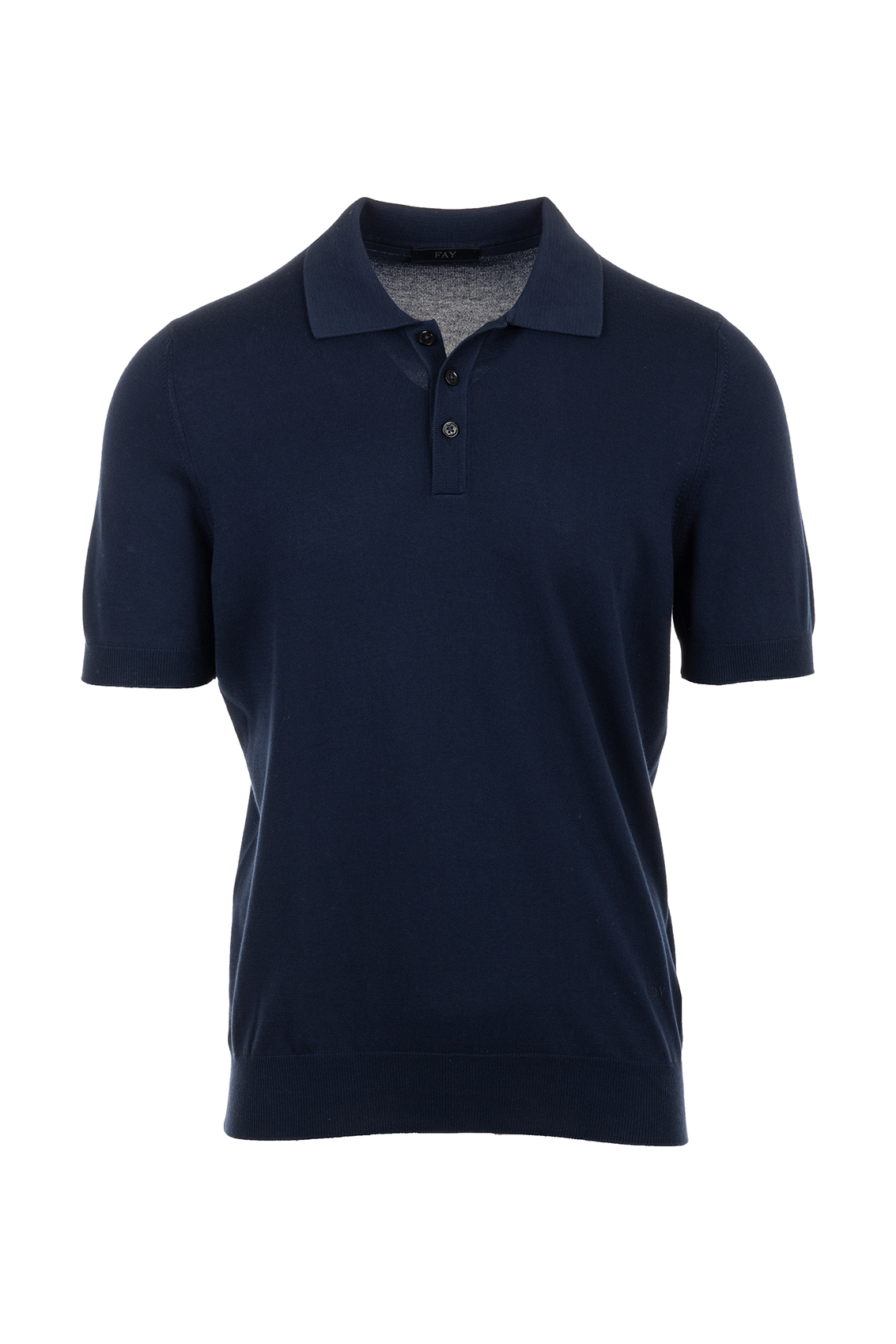 Polo a manica corta con tre bottoni, realizzata in maglia rasata di cotone con trattamento di tintura in capo frosted. Un raffinato capo casual arricchito dal logo Fay ricamato sul fondo.