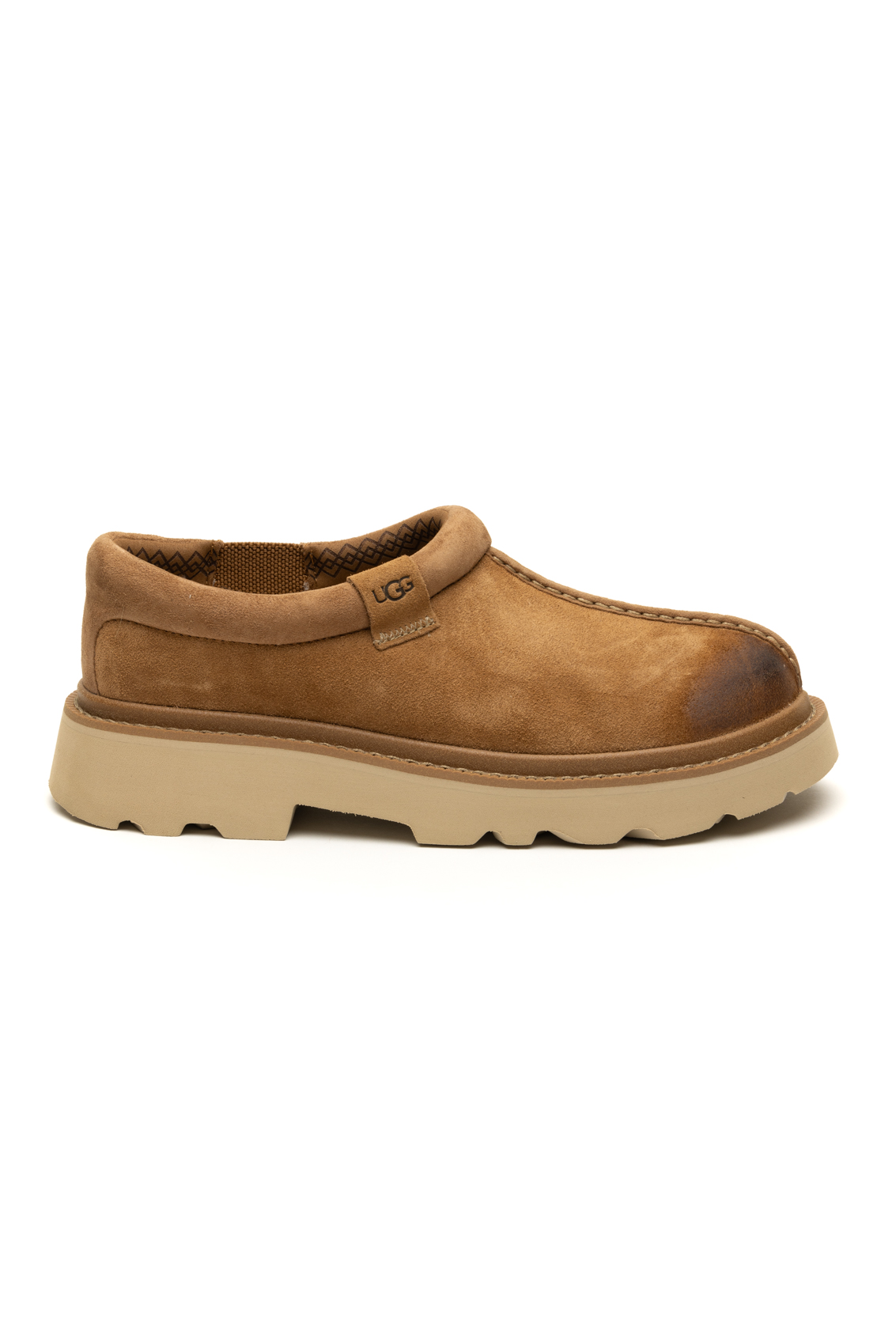 La Tasman Lug da uomo è una pantofola elegante e confortevole progettata per l'uso sia interno che esterno. La tomaia è in camoscio, fodera: 100% poliestere riciclato con trattamento antiodore Calzino: UGGplush™ in 60% lana riciclata e 40% TENCEL™ Lyocell Suola: EVA di canna da zucchero, che garantisce durata e comfort. caratteristico Gore elastico per un facile on-and-off .