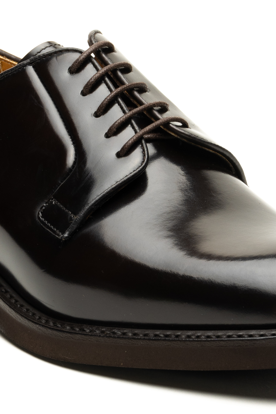 Questa scarpa Berwick è una derby con fondo bullonato e' realizzata in pelle di vitello spazzolata. Il colore è testa di moro (una tonalità marrone scuro). La composizione è 100% pelle, e la tomaia è quindi spazzolata, conferendo una finitura leggermente opaca e morbida al tatto.
